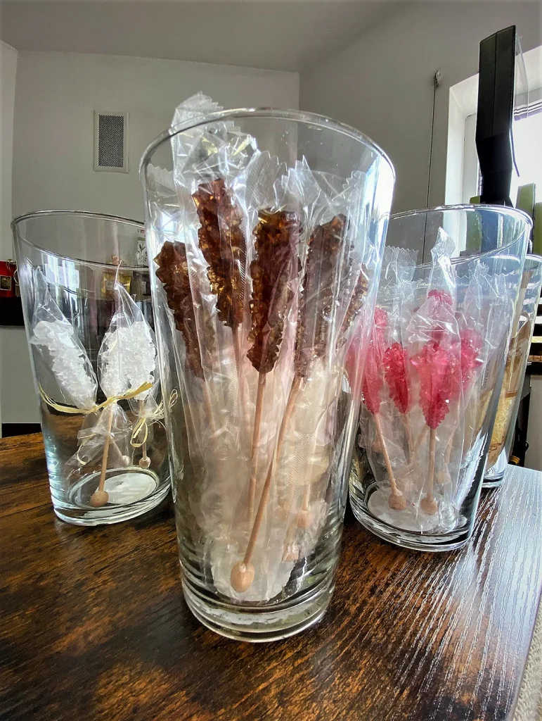 Cukier Brązowy i Cukier Kandyzowany z Szafranem na pałeczkach stanowi oryginalny dodatek do spożywania kawy i herbaty. Są to eleganckie pałeczki otoczone cukrem, które idealnie wpasują się w zestaw prezentowy. Użycie ich podkreśli walory smakowe spożywanego napoju.